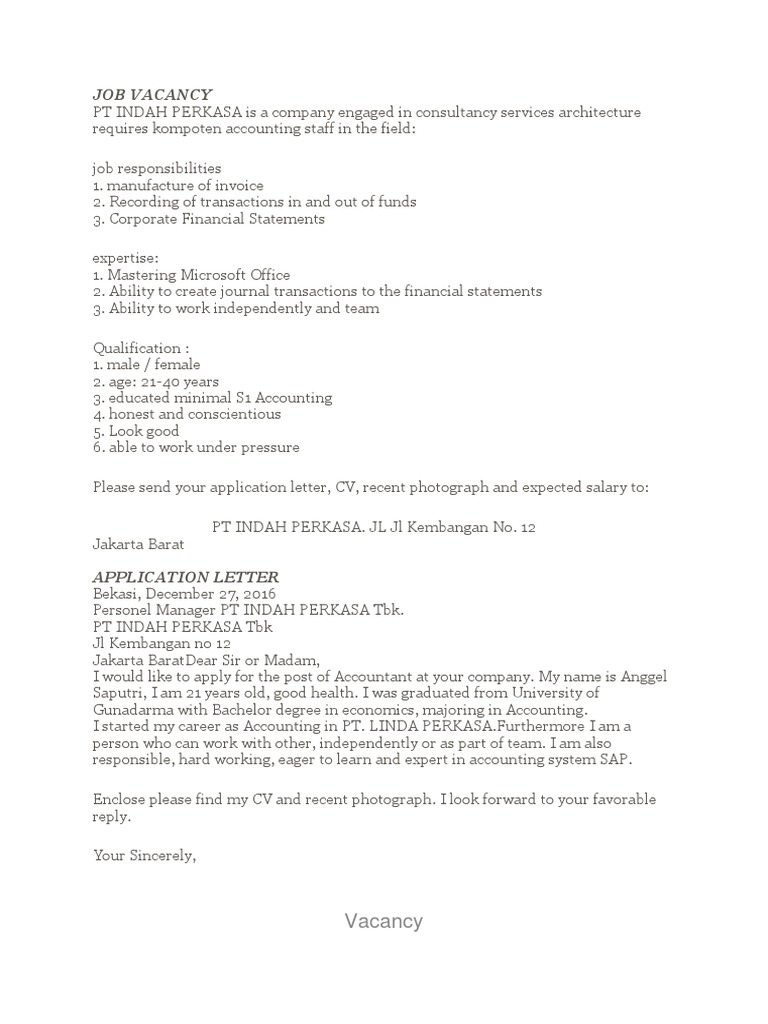 Contoh Application Letter Bahasa Indonesia On Sale