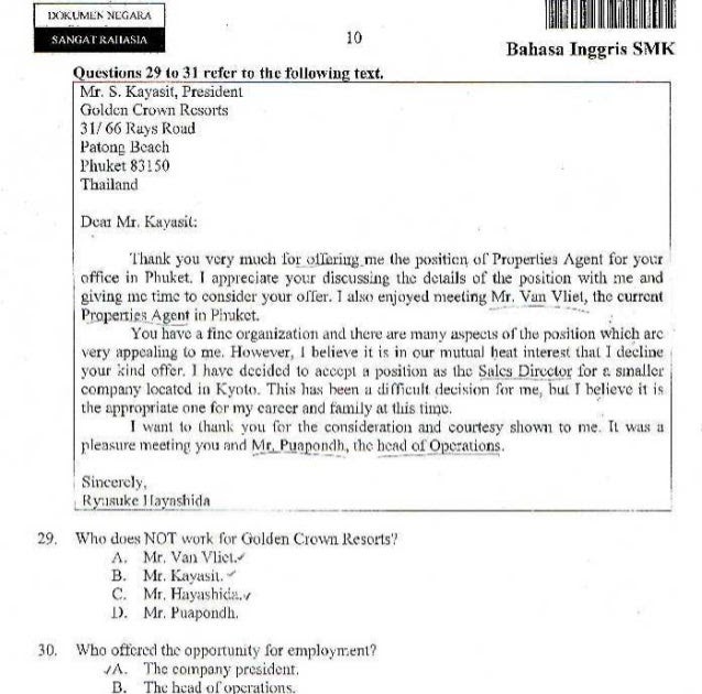 Naskah Soal Un Bahasa Inggris Smk 2014 Asli Untuk Latihan