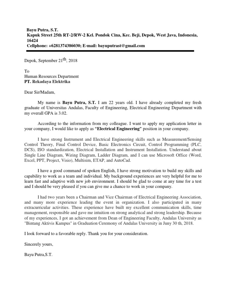Example Application Letter For Fresh Graduate Civil Engineer Pics Photos Job Application Letters Job Application Letter Sample Letter Example
