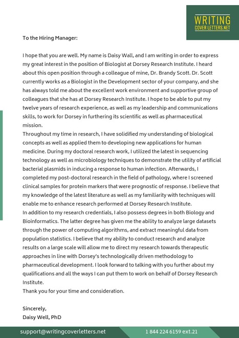 Biology Cover Letter Sample Letter Examples Writing Tips