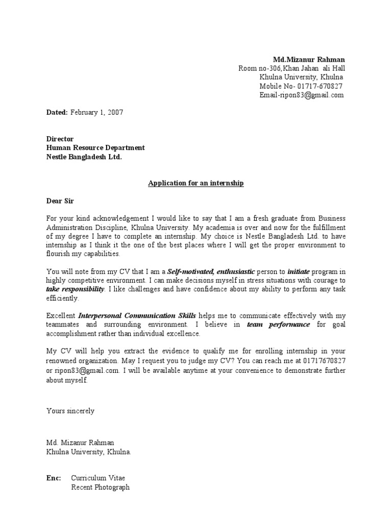 Cover Letter For Job Application Bangladesh Free Letter Sample Download