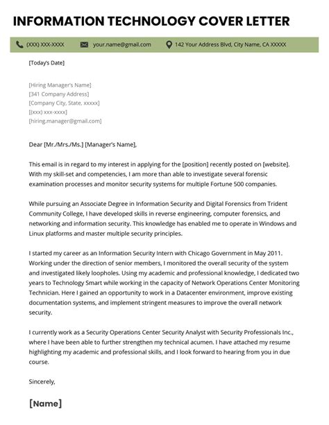 Cover Letter For Internship In Information Technology Sample Cover Letter