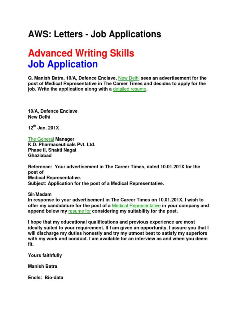 Details regarding my qualifications are stated in the bio data enclosed with this letter for your kind perusal. Take cues from these job application letter samples to get the word out. Since many of these applications arrive in email response via email is acceptable.