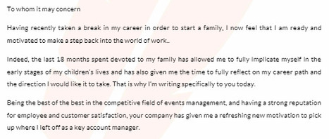 A cover letter gives you a great opportunity to be up front about the work gap and.