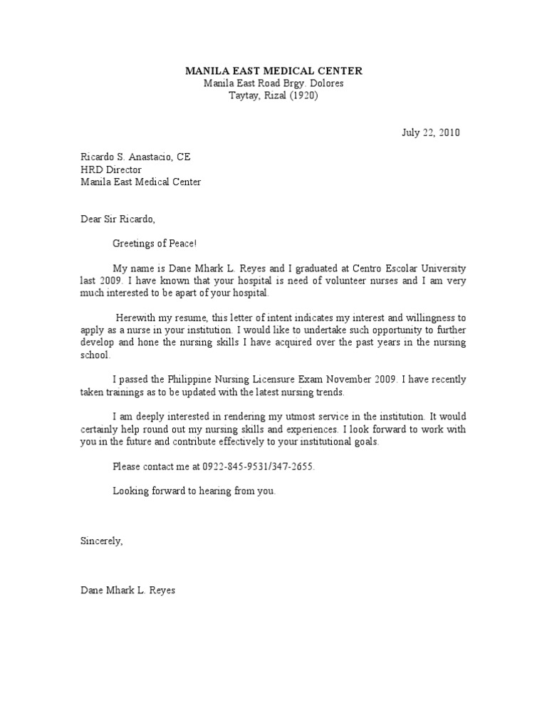 95 sample letter of intent for nursing school. A free sample of this letter of intent graduation school can be downloaded for free from the internet in word or pdf formatsample letter of interest for nursing school updated on july 9 2016 a letter of interest to apply for a nursing school program focuses on the candidates interest and understanding of the scope of the nursing program. I am writing this letter so as to seek admission to the. Have a look at an example of an intent letter in this article. A sample letter of intent for graduate school could help get you started.