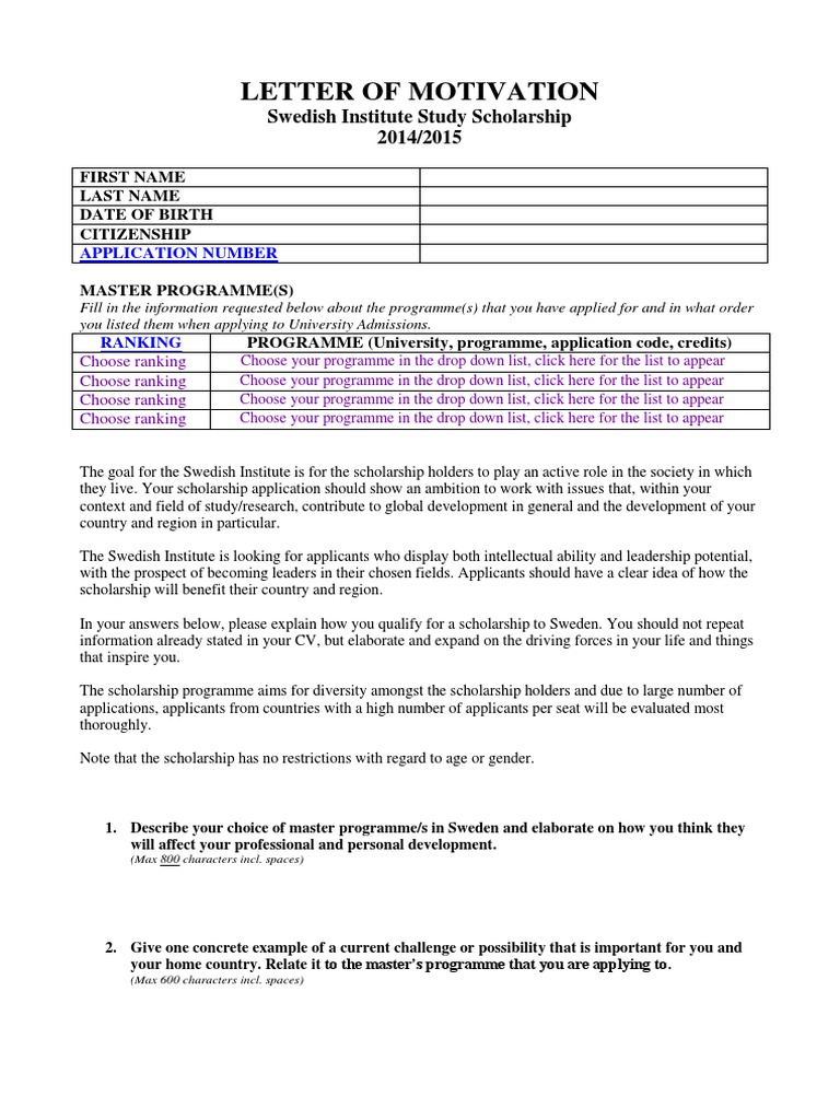 A motivation letter also known as a letter of motivation or letter of introduction or statement of purpose is a document that is attached to your scholarship application stating your competence and reasons why you should be given a scholarship. Learn how to write a killer scholarship motivation letter that can make or break your application. The scholarship committee will be looking at hundreds of such letters and the ones that clearly state the purpose in a brief but thorough way will be the ones that are rememberedit is also important for the applicant to present him or herself as a good candidate for the scholarship.