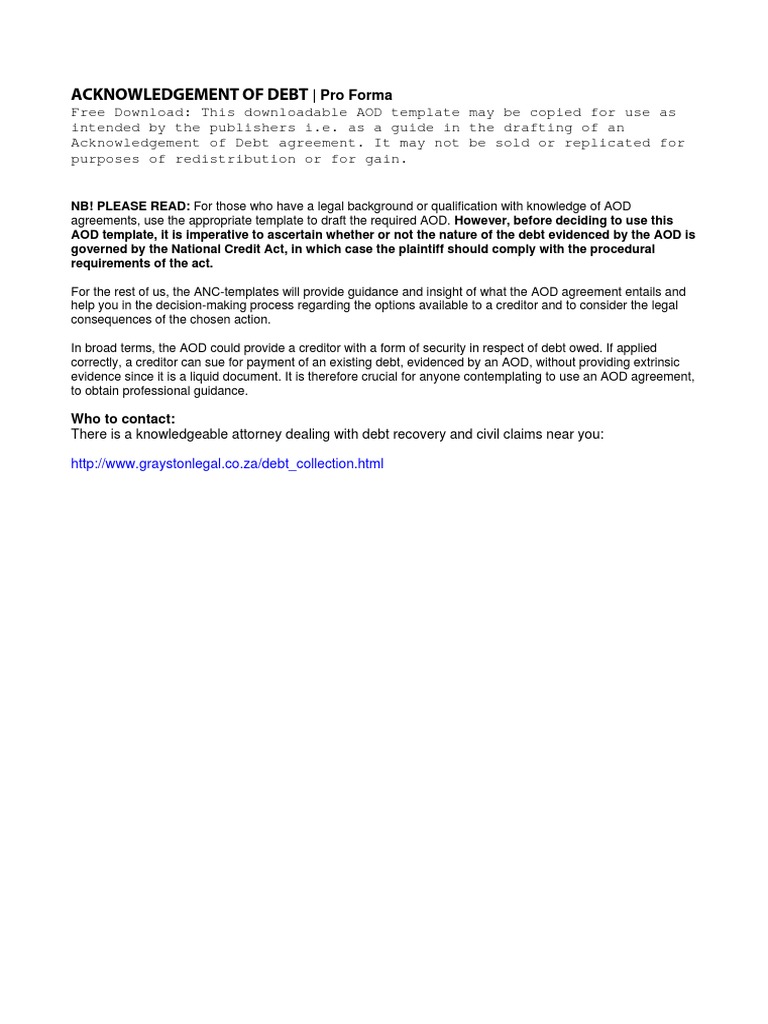Notice Of Debt Acknowledgment Template By Business In A Box