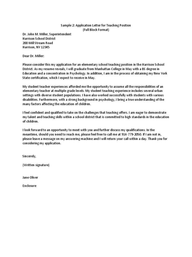 The letter of application is intended to provide detailed information on why you are are a qualified candidate for the job. Full block when using the full. It is wise to know the difference between these in order to write in a professional manner. See more ideas about application letters application letter for teacher letter example.