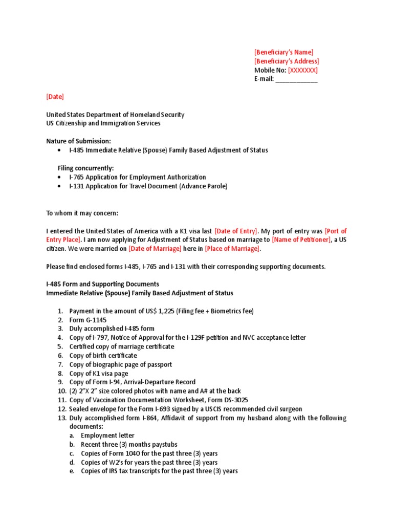 Aos Cover Letter 1 Doc Immigration To The United States Government Information