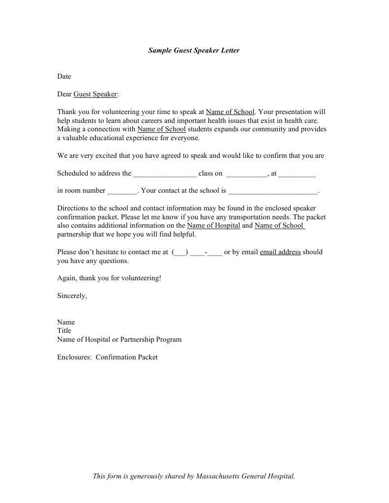 A guest speaker confirmation letter is the the formal letter written by an event organizer to someone who has previously accepted to speak or to have a presentation inside of a future conference workshop seminar etc. It is people like you who restore our faith in humanity. The format of the letter. Maamsir a million sincere thanks to you for the sea of wisdom and knowledge you showered us with during your amazing lecture.