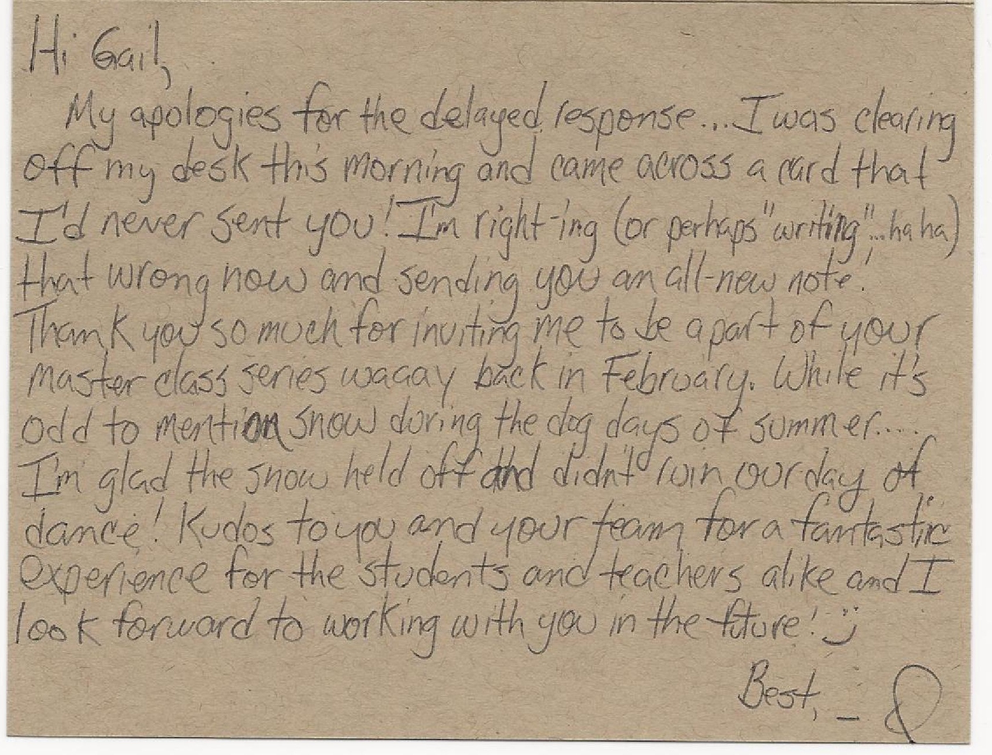 Show your childs teacher how grateful you are with one of these 13 creative ways to say thank you. General thank you letter example here is a general thank you letter you can send via email or mail to the people who have helped you with your job search. Become the best that i could be. Dance teachers share their passion for the sport with their students.
