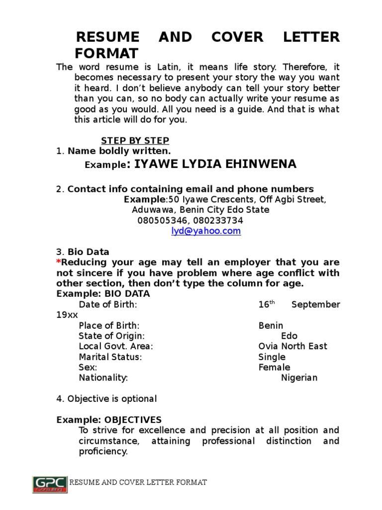 Latest Cv Format Cover Letter In Nigeria Recommended By Hr
